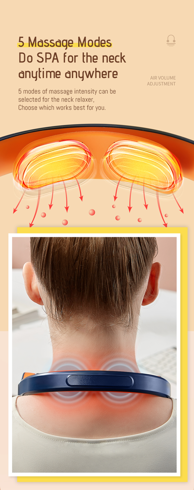 - Also, 5 levels of massage intensity can be selected for the neck relaxer, so you can choose which works best for you.