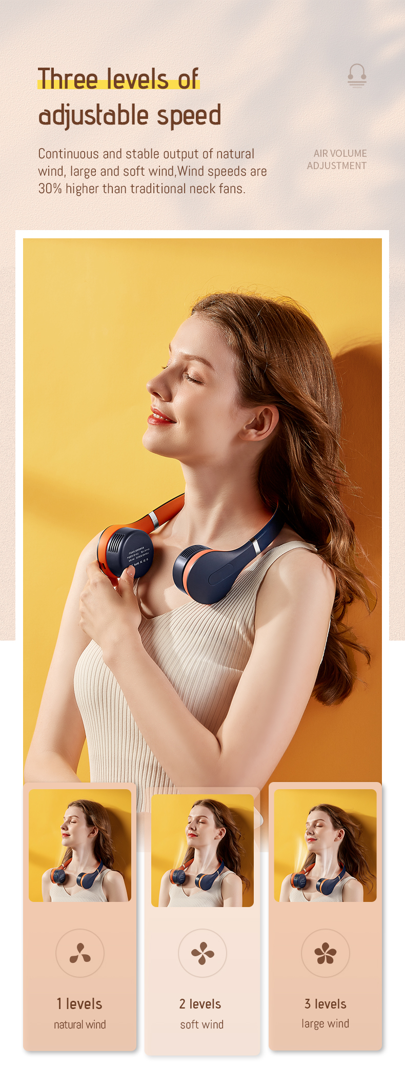 - With its three levels of adjustable speed, our neck cooler imitates nature’s wind flow and lets you choose the level of cooling you want.