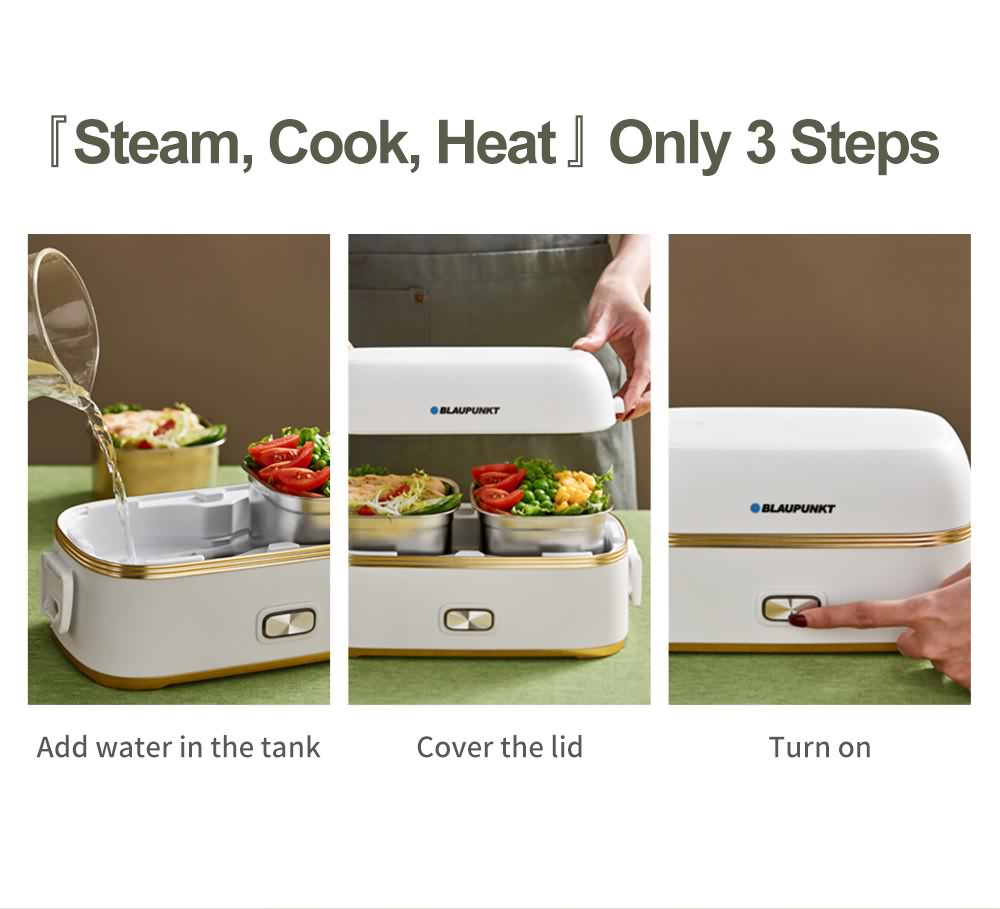 Just put the food in the lunch box, steam and heat with one button, and you can start eating when is finished. The whole heating process is silent, even if it is heated at the workstation, it will not affect the work.