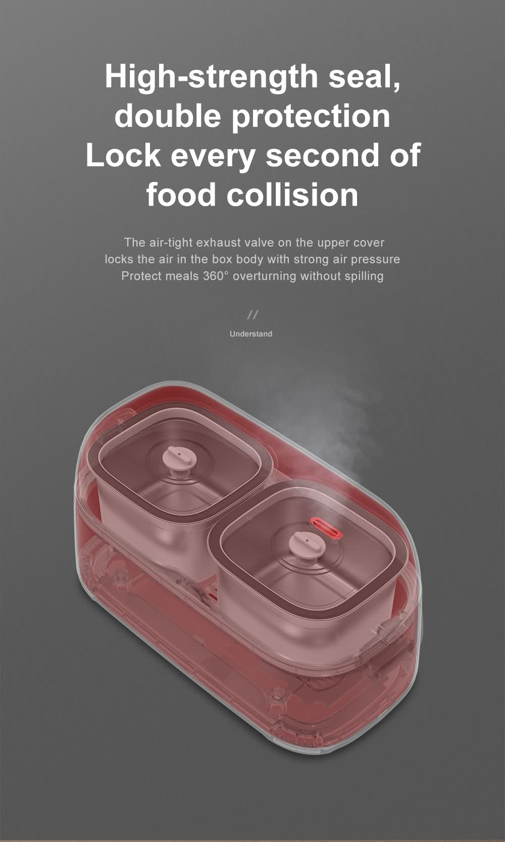The upper cover is sealed with a vent valve, and the strong air pressure locks the box body to protect the food from 360° overturning without spilling.