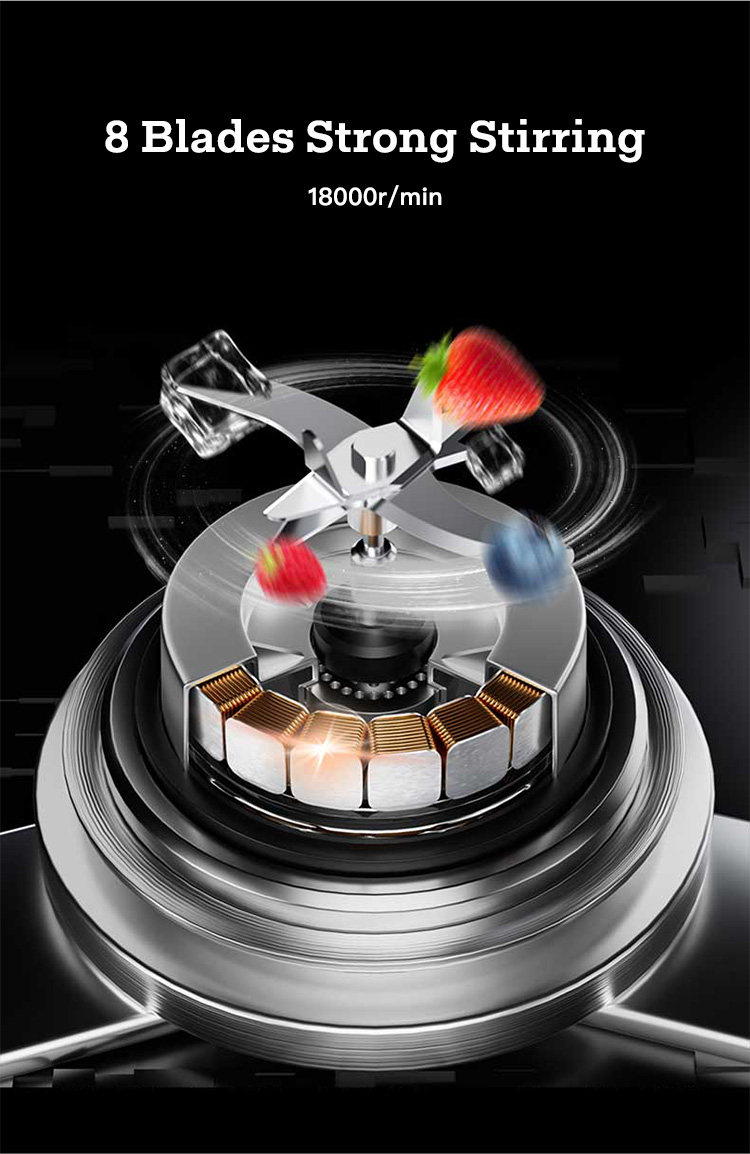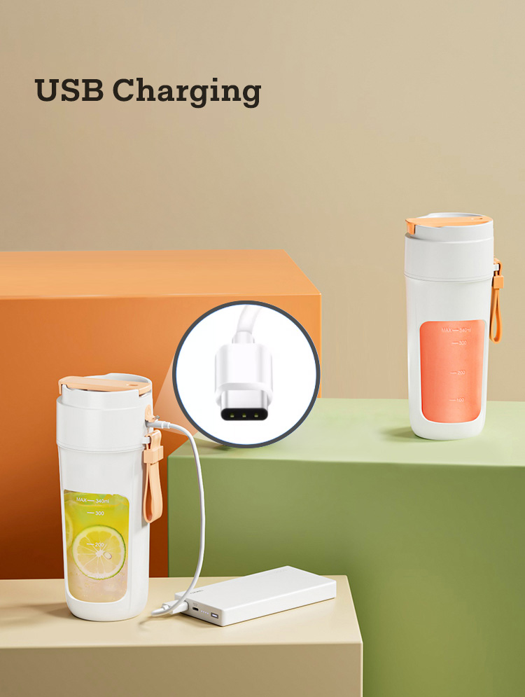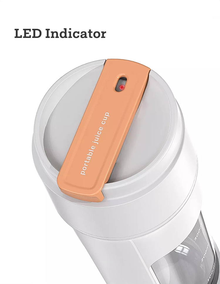 This portable blender for shakes and smoothies has a built-in safety function to prevent the blade from rotating when the tank is not connected to the base or is not tightened(The indicator light will flash red).You will get: 1x portable blender, 1x USB charging cable, 1x user manual. If you find that the juice is not as delicate as you want after 30 seconds, you can repeat the breaking step.