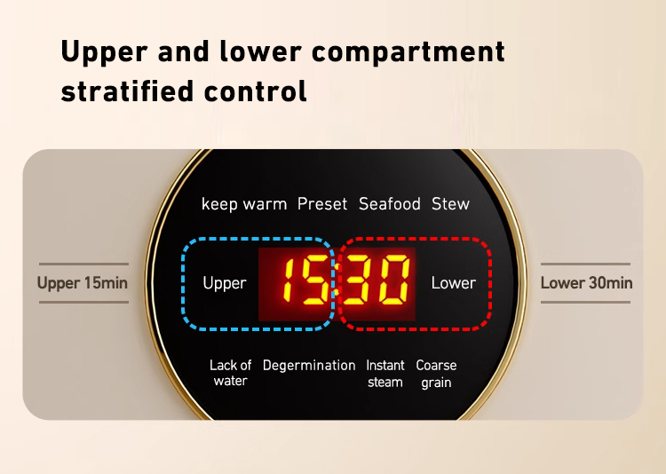 MAK electric food steamer has 7 cooking function settings to steam veggies, meat, seafood, rice, fish, eggs, and other foods, which can meet your daily various steaming needs. By pressing the smart control panel, you can easily select different cooking functions which has corresponding default time, also you can set the steaming time from 5-60 minutes according to your favor.