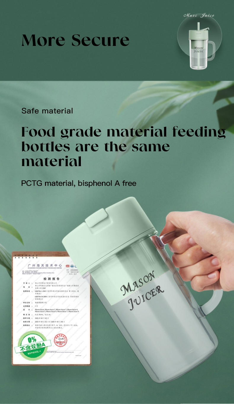 With environmentally friendly materials, high borosilicate glass body has been tested repeatedly, not easy to burst; stainless steel blades and BPA-Free will not hurt health, light and durable; silicone cup cover, simple and elegant, easier to hold; silicone cup pad, non-slip and not easy to move. Whole-body waterproof design, good performance, can be directly rinsed with water, safe to use without worry.