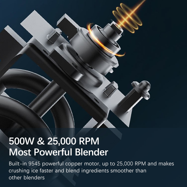 Quiet blender with 500 watt powerful motor and the sharp 6-point stainless steel blades work perfectly together for powerful blending and consistent results.