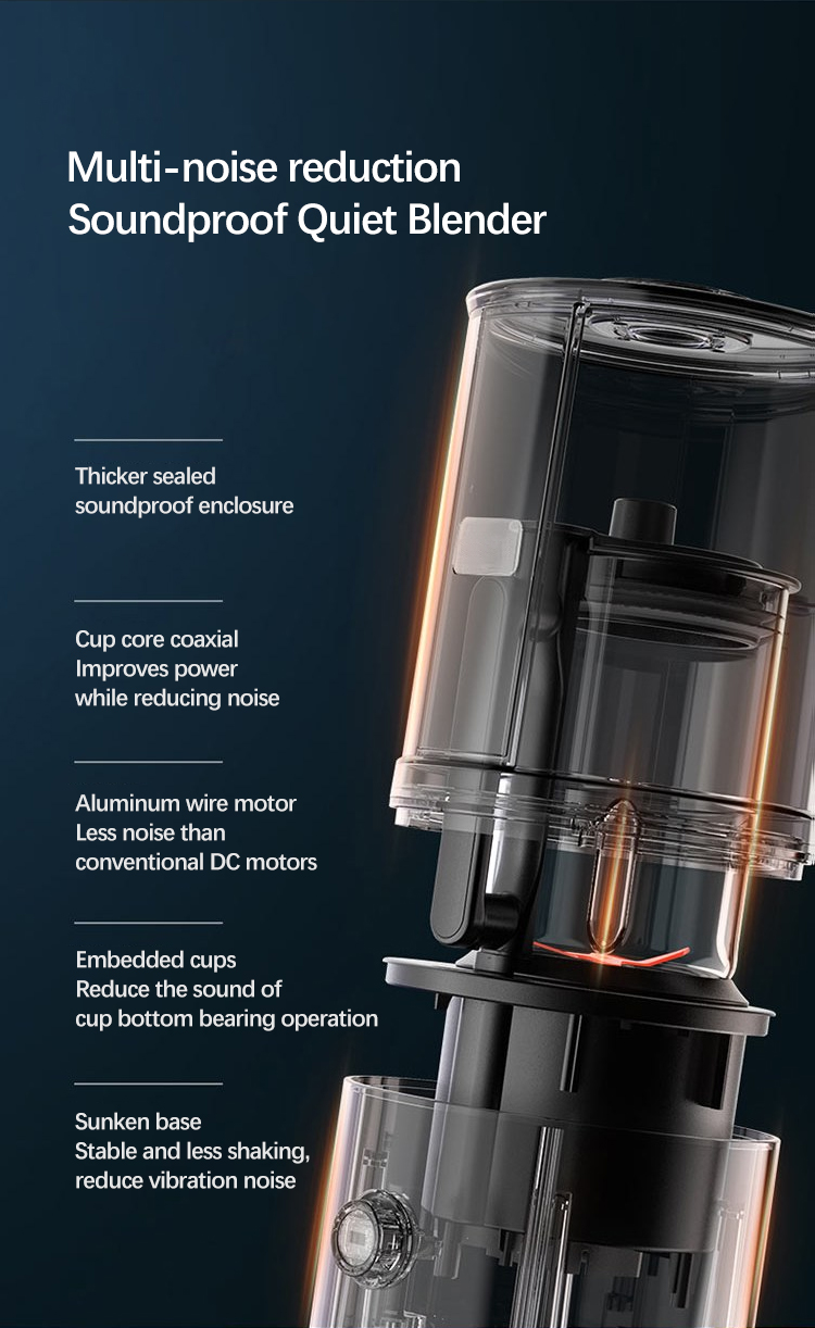 soundproof quiet blender is designed with a thinckened shield cover to reduce noise when blending.The transparent shield don't effect your blending but less noisy.That's a professional blender should be.
