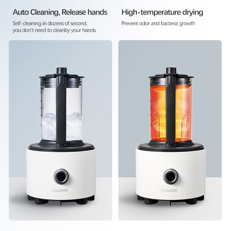 All materials of this smoothie maker are BPA-free, with food-grade material, absolutely safe. Use a drop of dish soap and warm water, your kitchen blender can clean itself in 30 to 60 seconds. To clean the motor base, use a damp cloth to wipe clean.