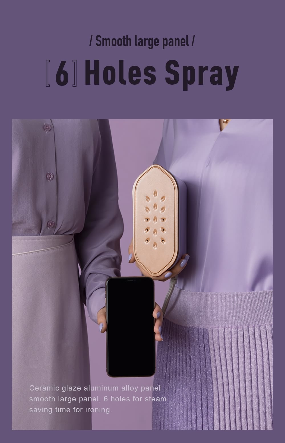 Ceramic glaze aluminum alloy panel,smooth large panel, 6 holes for steam, saving time for ironing.