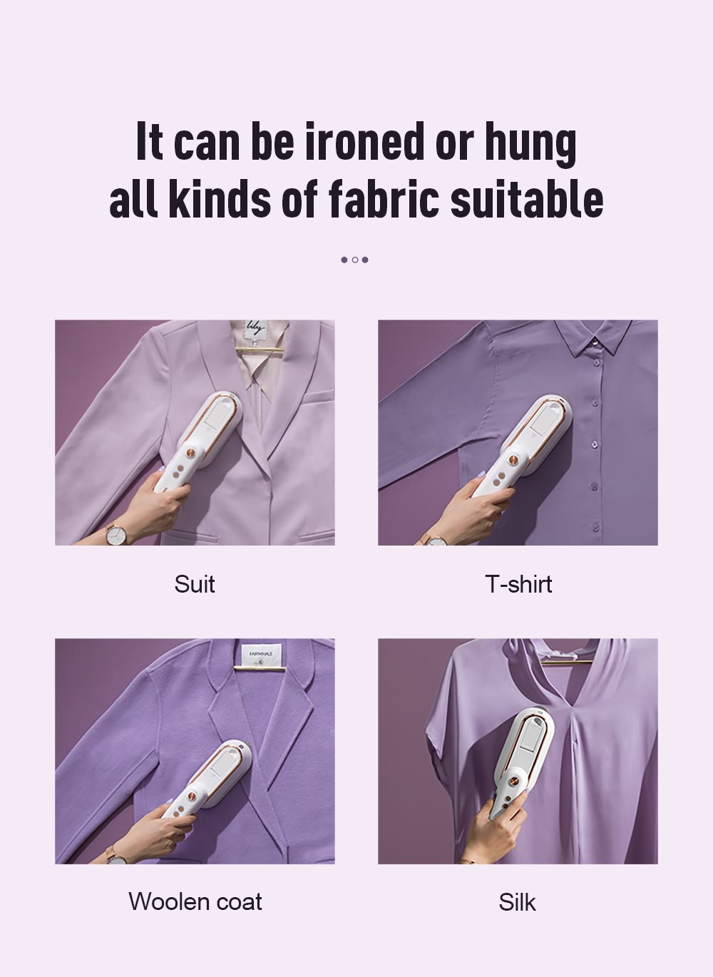 1. It can be ironed or hung, all kinds of fabric suitable