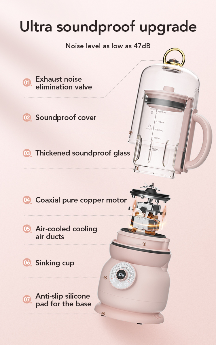 with our groundbreaking 7 layers of noise cancelation technique, noises from this blender can be limited to 47dB, which is just as quite as being in library, you won’t be bother by the loud blending noises anymore.