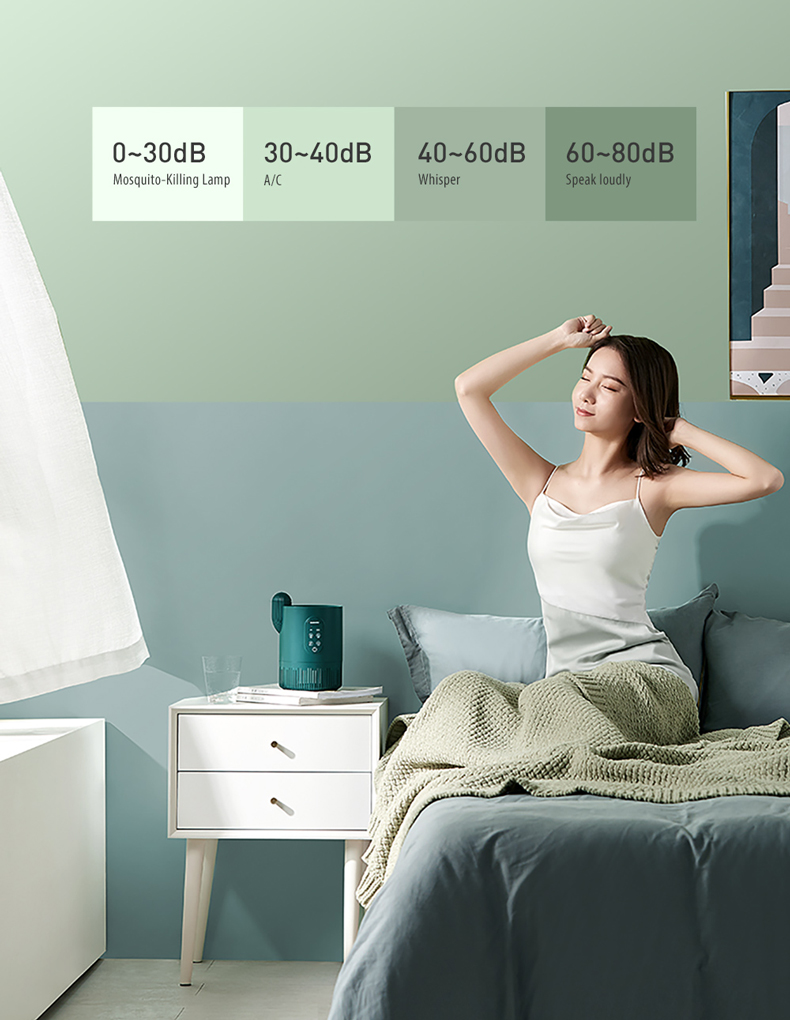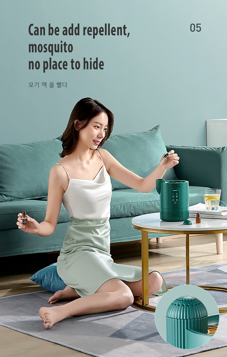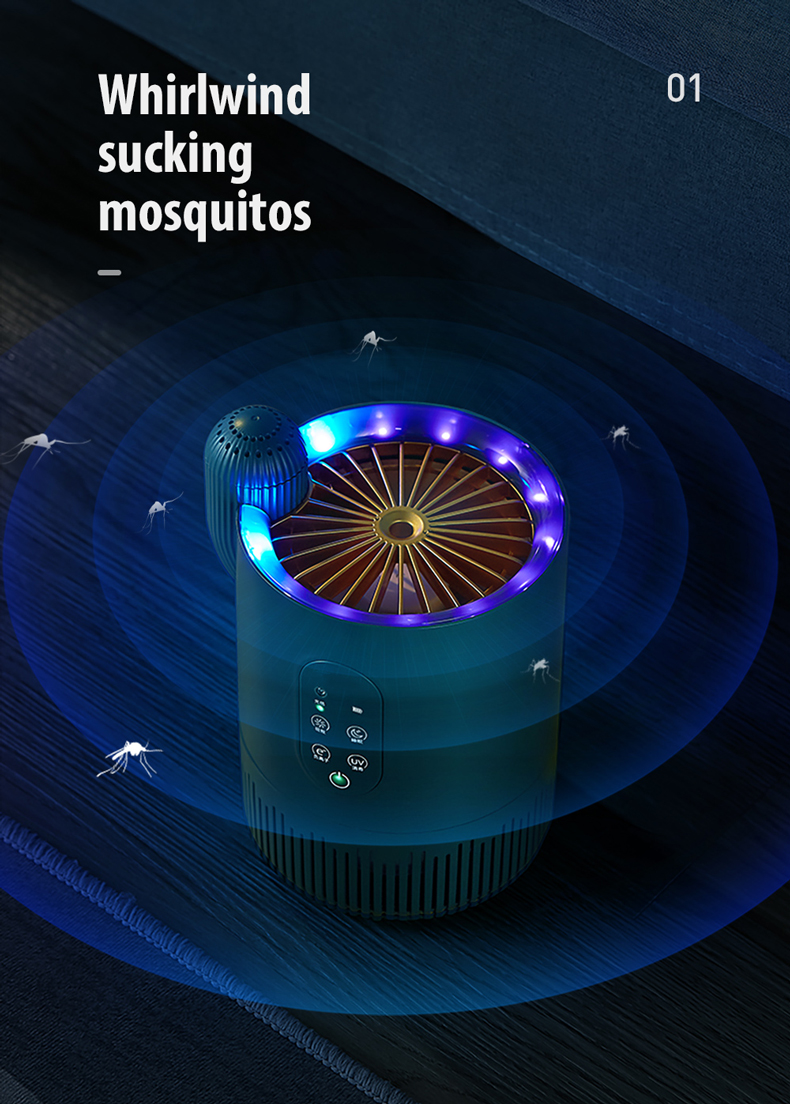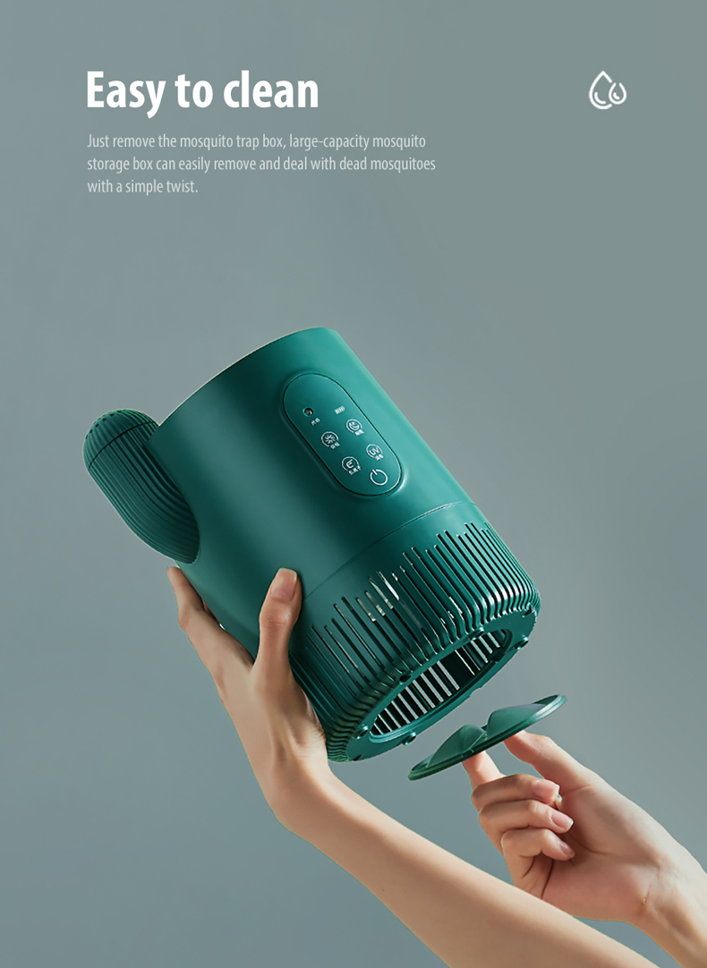 - The 360 ° ultraviolet light can greatly attract the surrounding mosquitoes and flying ants, then immediately be sucked into the dead insect trap below through the powerful wind of the built-in 2300rpm turbo fan, to They have no place to escape, and are then air dried and dehydrated.