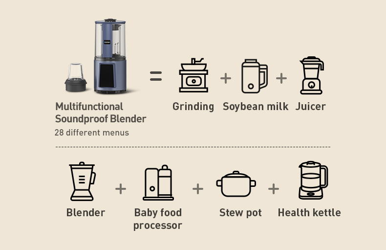 it contains 28 different menus, covers from shakes, smoothies to babyfood to hot soup, congee. Work in companion with our thickened 4 stainless blades, 1200W, 29000r/min blending power, you can expect a perfect texture of your drinks.