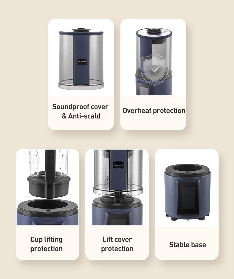 24 hours reservation, put in the ingredients, and you can choose to enjoy your drink anytime you want. You can entrust your safety with our blender, it will automatically stop operation, when lid lifting, bottle lifting.