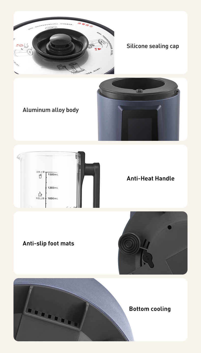 we upgrade our blender to Aluminum alloy body, more elegant, more stable, more soundproof. It is also equipped with voice notification,led touch screen, procedure display, make it super easy to operate and take your experience next level.