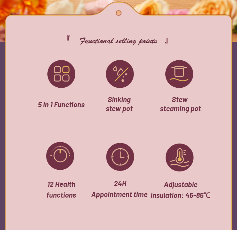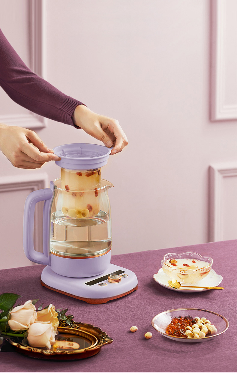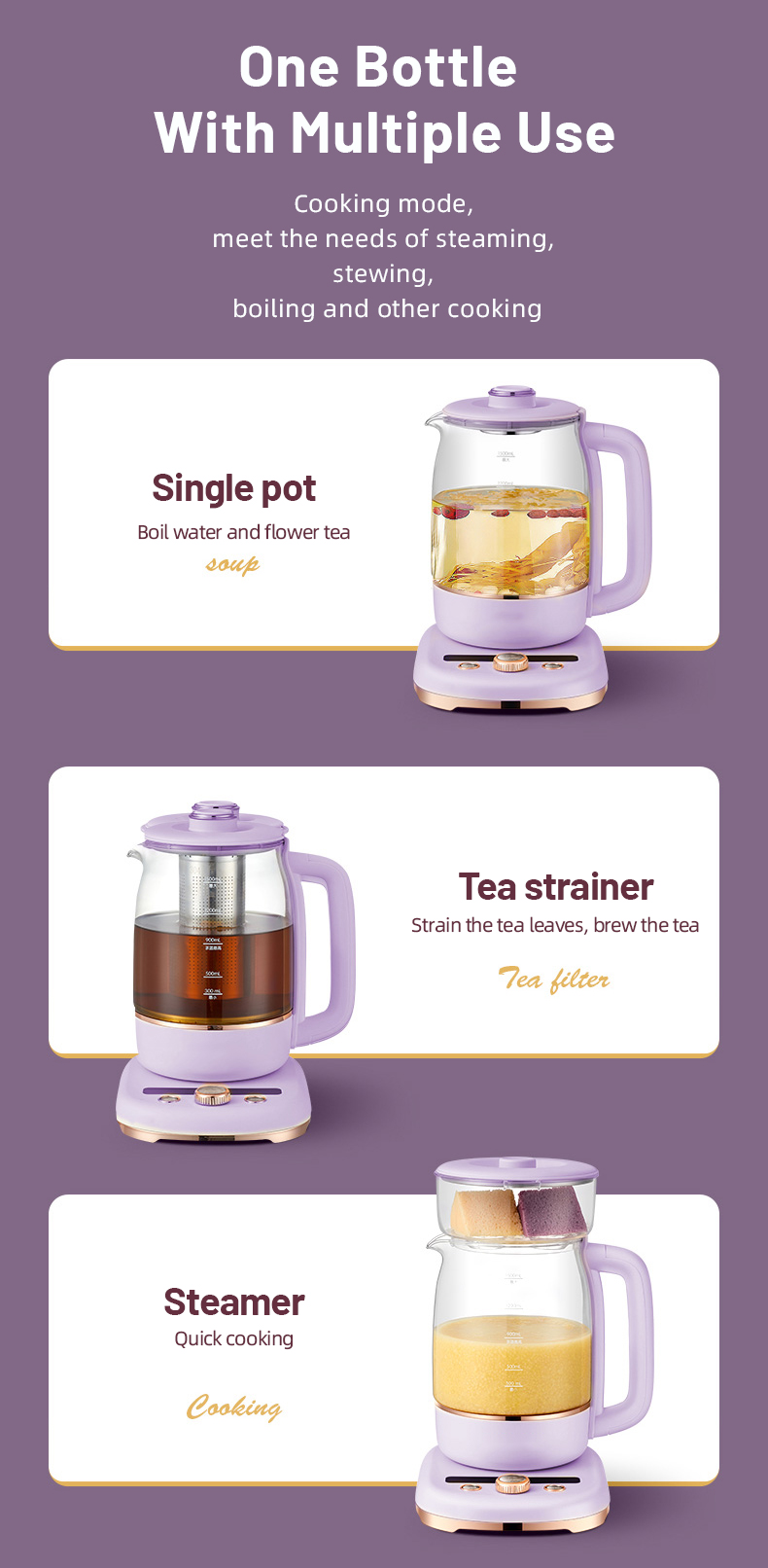 8 major functions with herbal, bird’s nest, gelatin, instant bird’s nest, porridge, water boil, scented tea, tremella, one bottle with multiple use