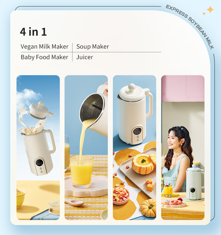This machine can also be used for making baby food supplement, grain rice paste, fruit and vegetable juice, various meal replacement, nut dessert, milkshake, etc.