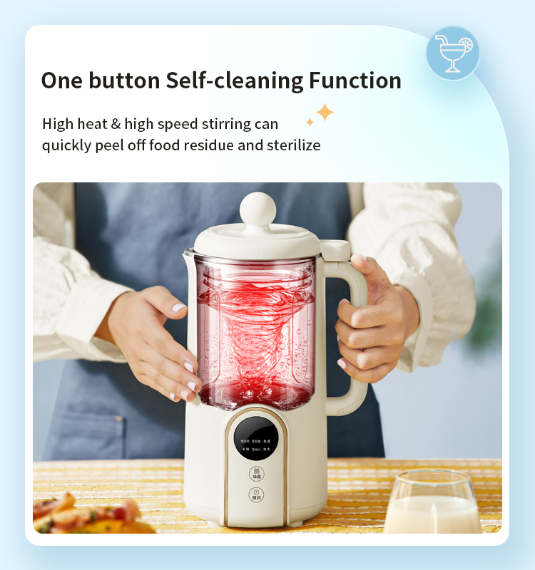 With a touch panel, this soybean milk maker is very easy for you to operate. It has an integrated body handle and a 360° no dead angle cover. What’s more, it has one-click automatic cleaning!