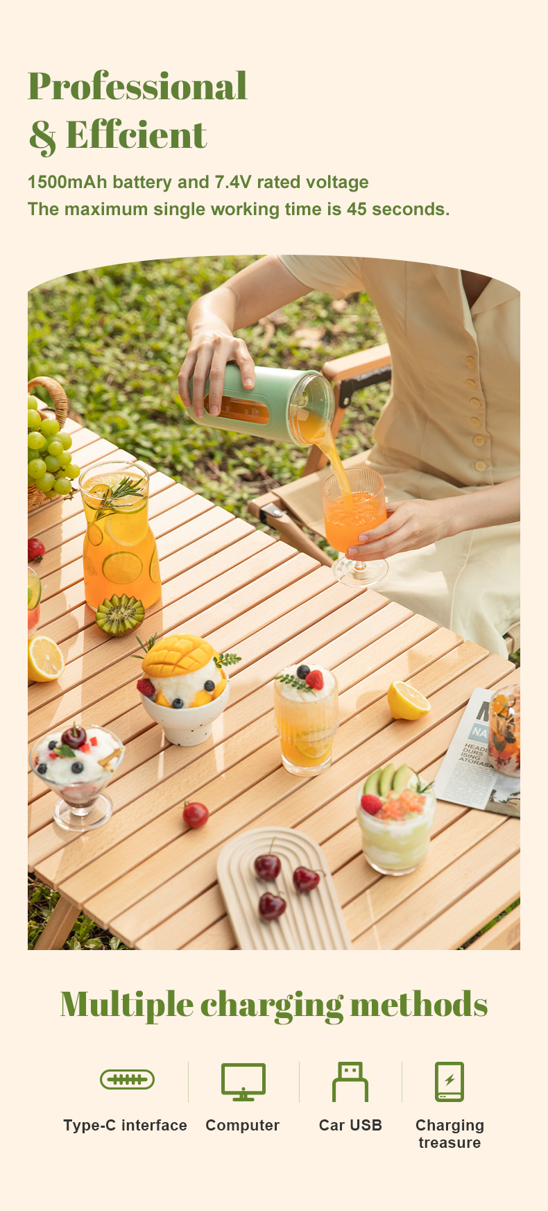 We’ve got a highly efficient group to deal with inquiries from shoppers. Our purpose is “100% client fulfillment by our product high-quality, price tag & our staff service” and enjoy a superb reputation amongst clientele. With quite a few factories, we will provide a wide variety of Professional China China Travel Rechargeable Blender Cup Mini Portable Vegetable Juicer Fruit Juicer, Our merchandise are widely recognized and trustworthy by users and can satisfy continuously changing economic and social needs.