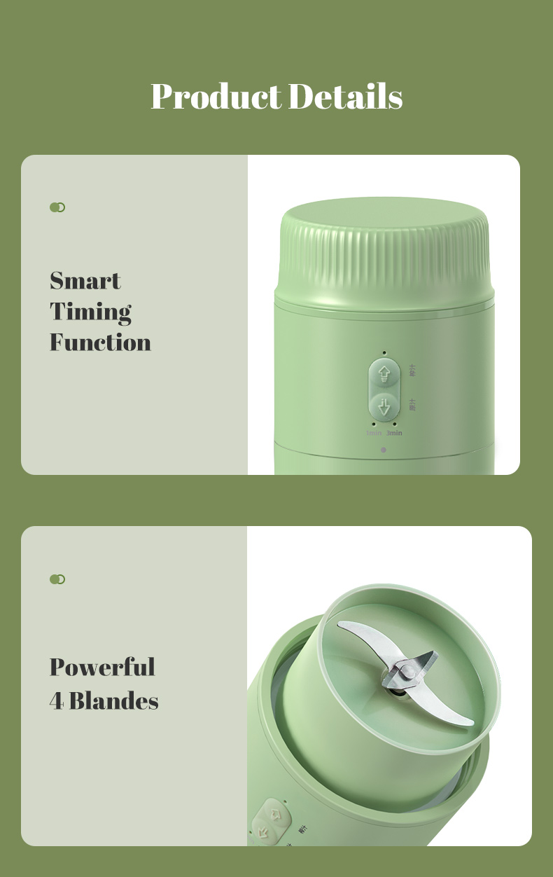 The blender is carefully selected high-quality food-grade PC material, healthy, safe, and odor-free. Stainless steel blades and BPA cups will not harm your family’s health. It can be used to make juice, smoke, protein shakes, jams, baby food, DIY masks to meet your various daily needs