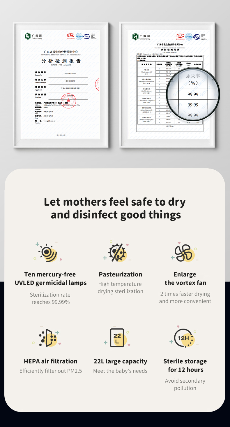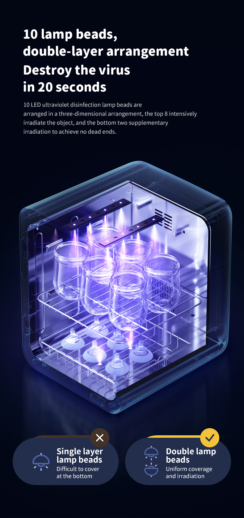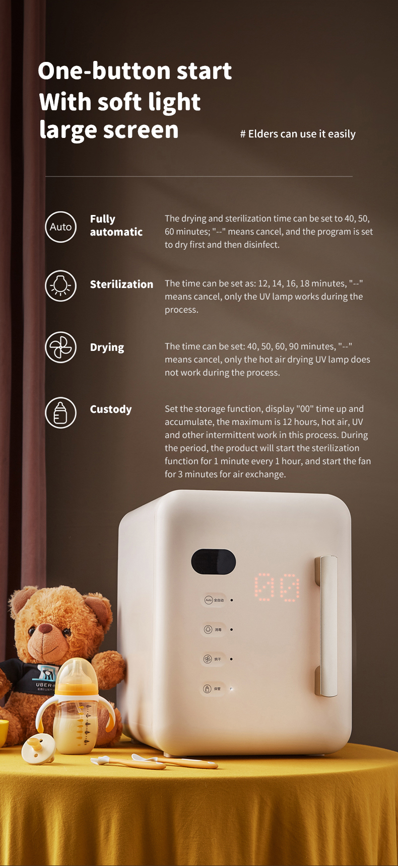 Automatically dry and sterilize in as little as 40 minutes. Effortlessly one touch of the selection and takes care of the rest for you.