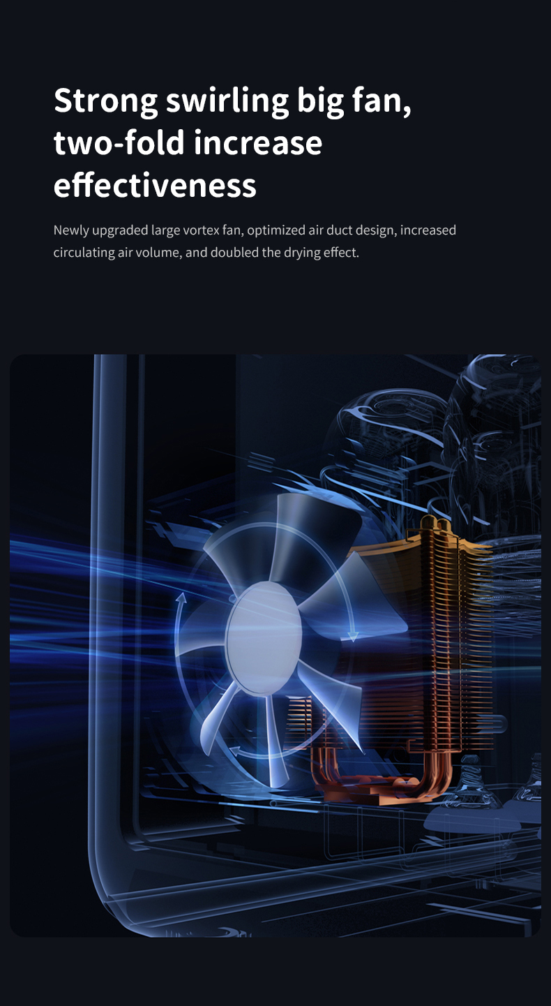 PTC low heat with a dual vent to safely and efficiently remove moisture without damaging the gears.
