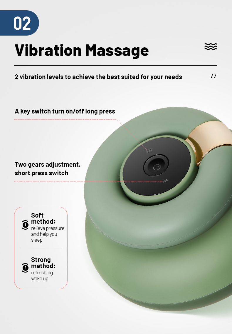 A built-in 1200mAh rechargeable lithium battery and being compact in size to enjoy a head massage anytime, anywhere.