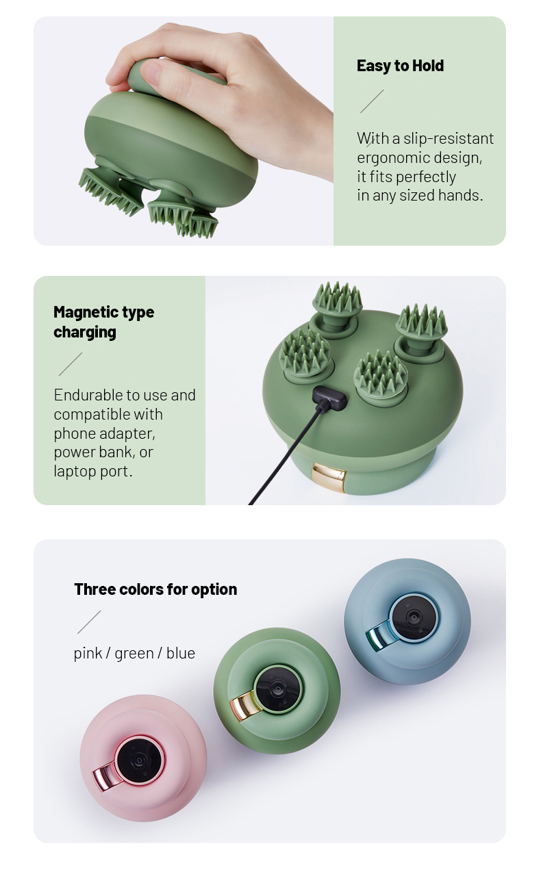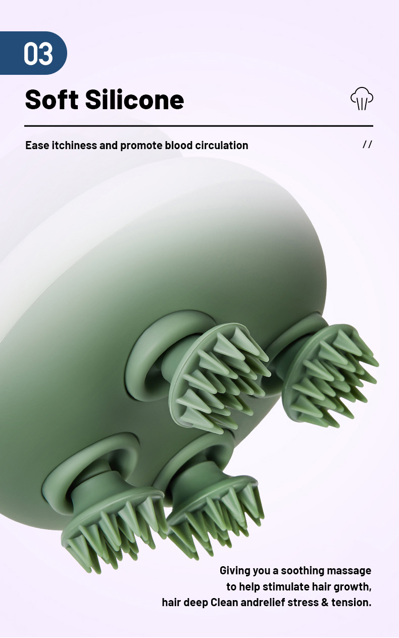 Made with IPX7 waterproof material to enjoy head massages in the shower. The soft silicone head prevents hair from getting tangled which adds more comfort to your scalp massage.