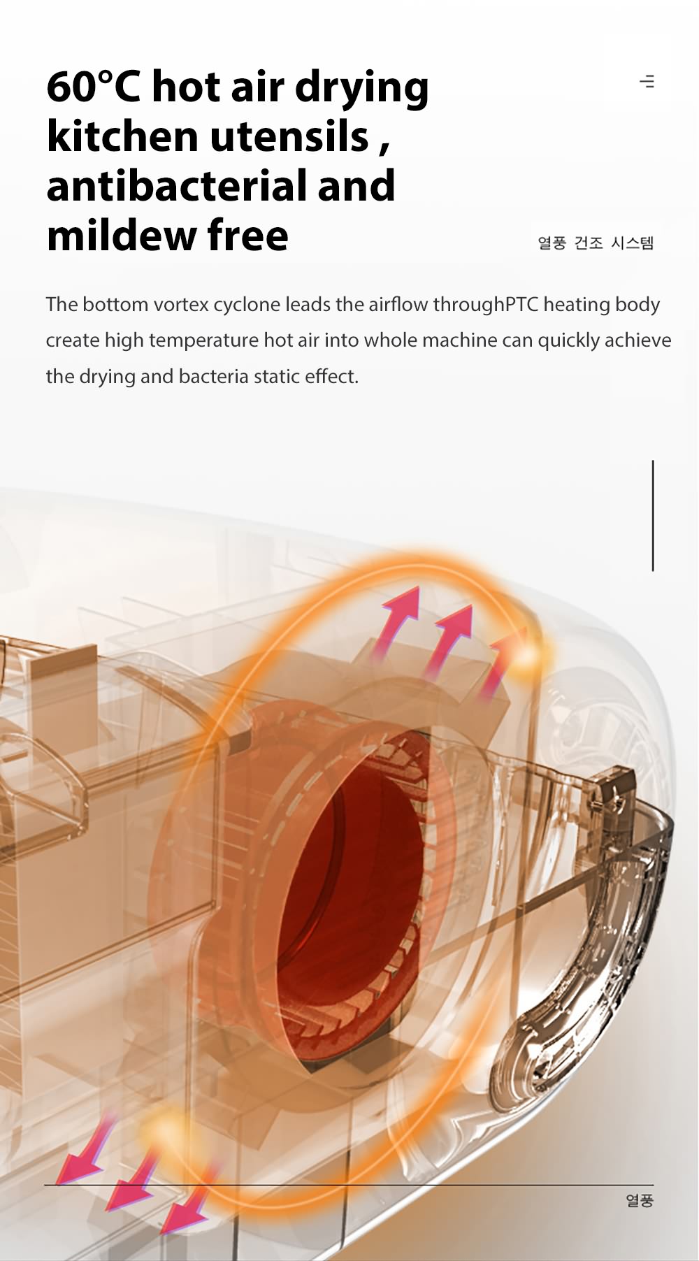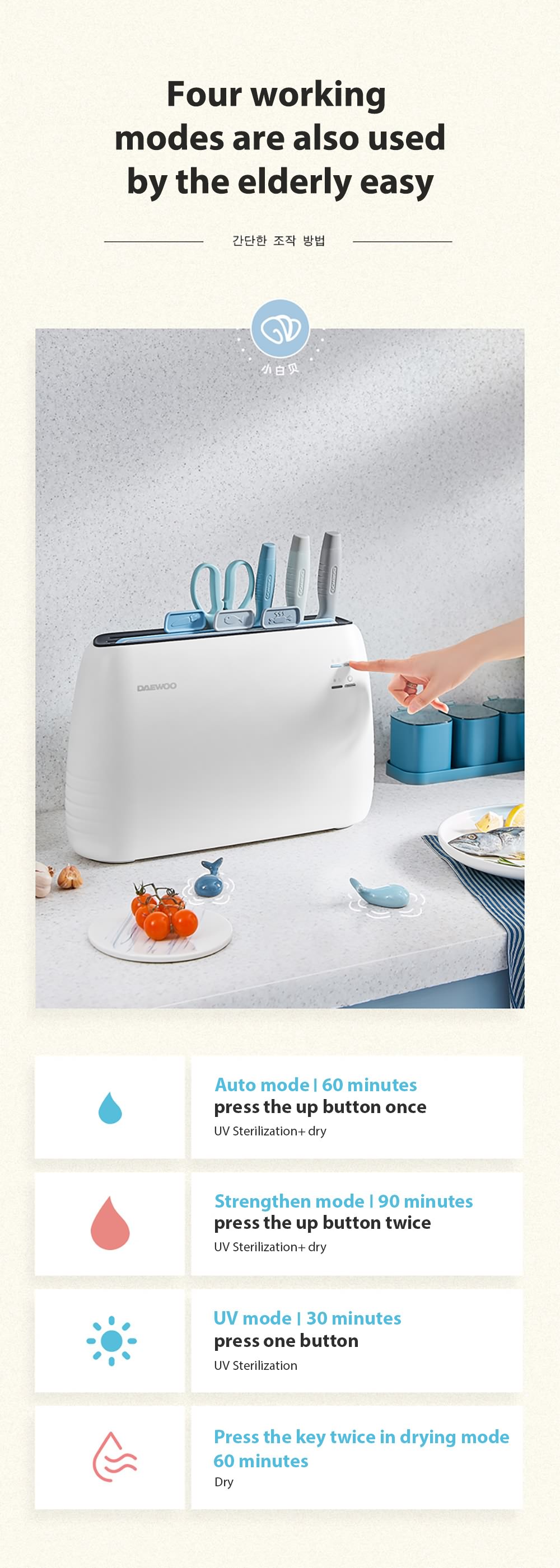 Warm air drying function: keep cutting boards and knives dry and hygienic, and keep knives from rust
