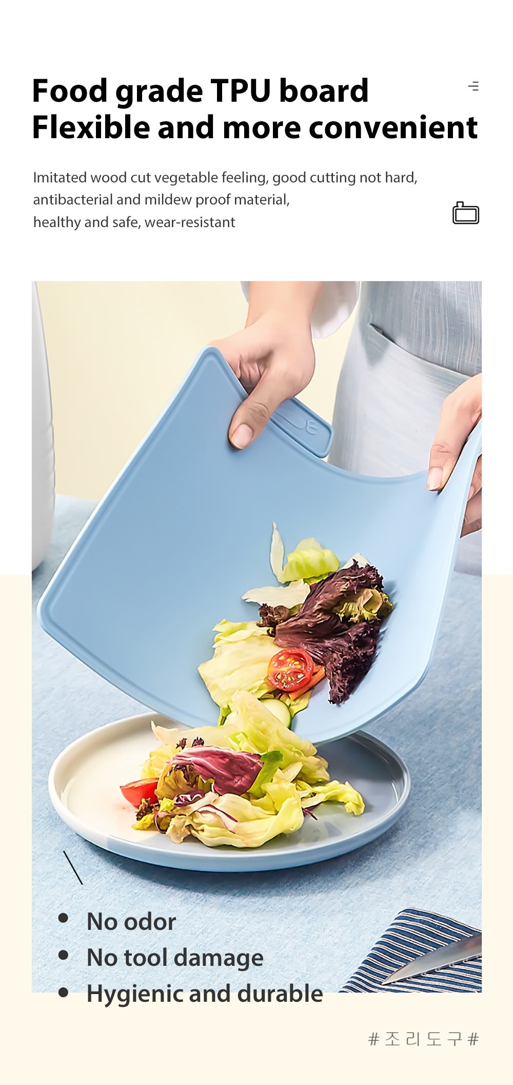 Fits commonly used 3pcs cutting board, kitchen knives, shears, easy storage and equipped with new material TPU cutting board with signs for different food, you can use different cutting boards according food.