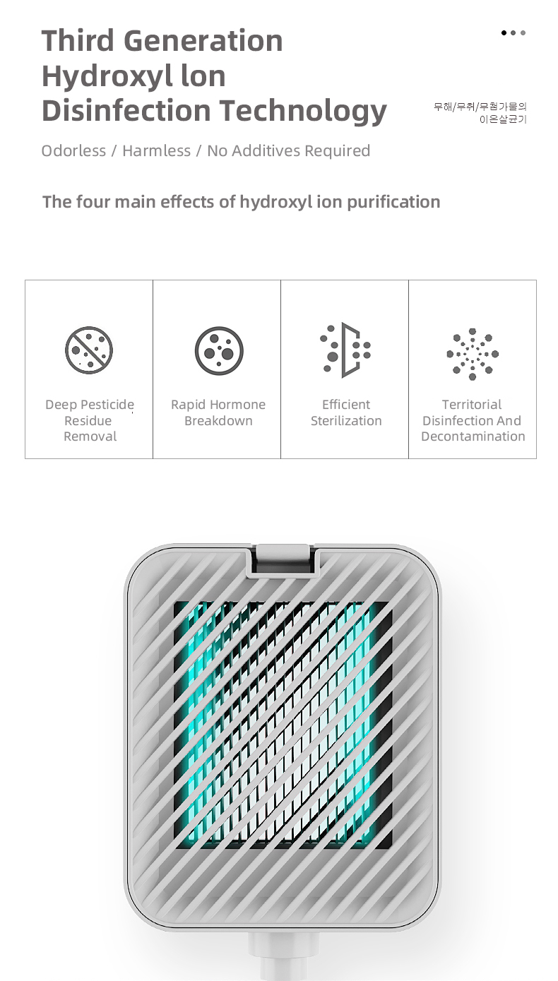 hydroxyl purification can effectively kill bacteria, viruses, residual pesticides and other chemical substances on the surface of fruits, vegetables and seafood, so it can be eaten safely and safely.