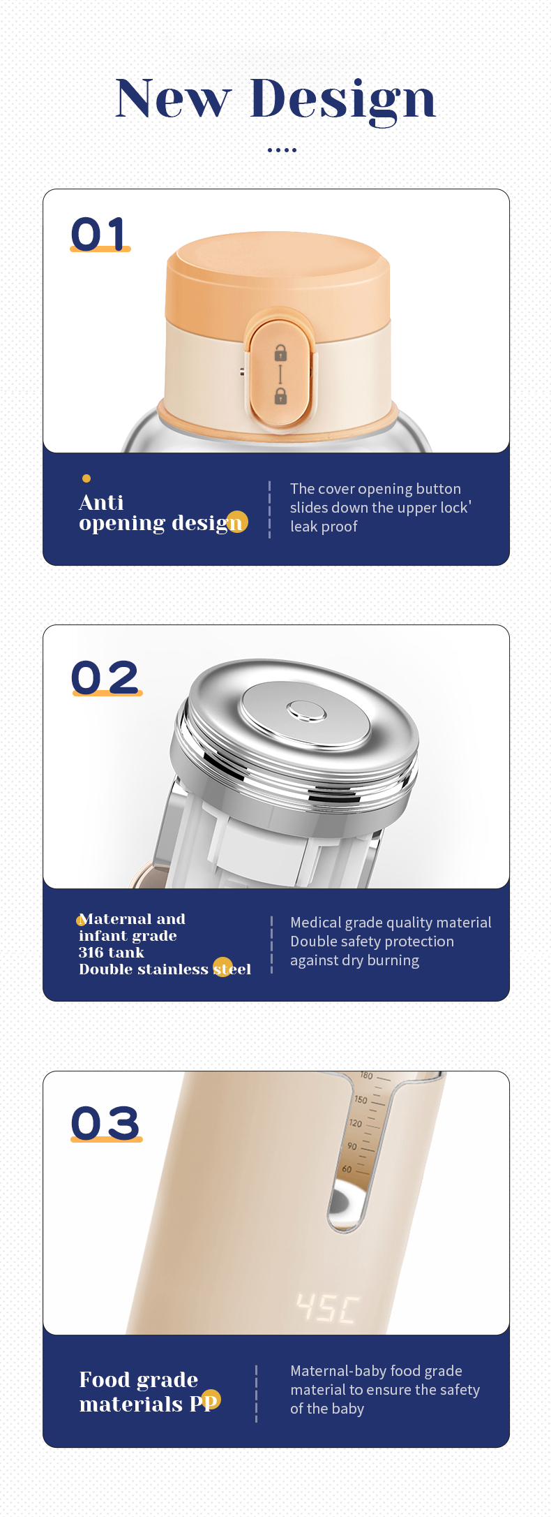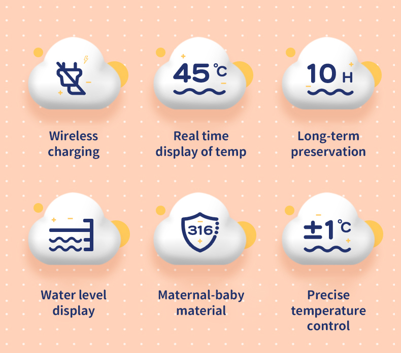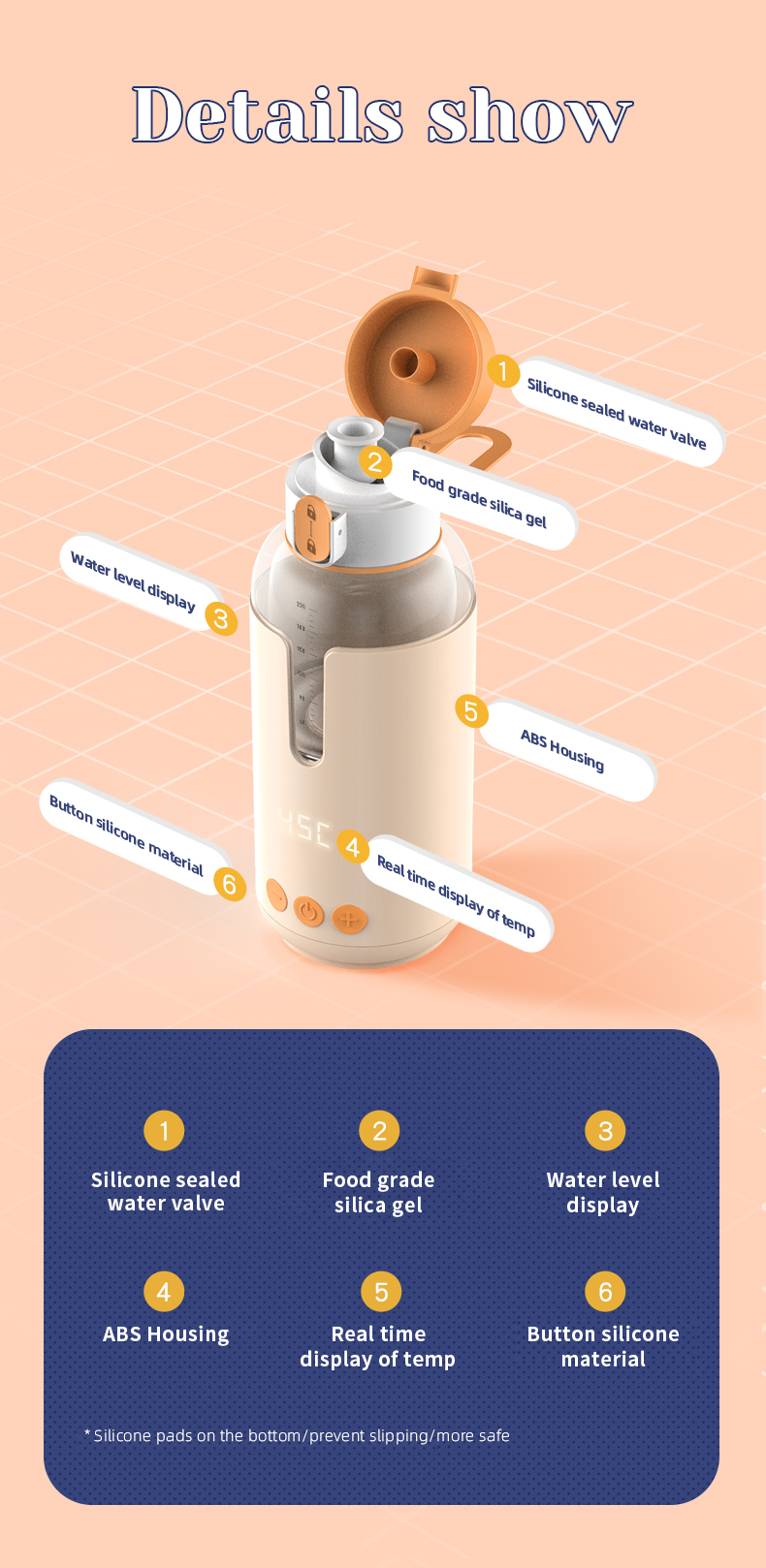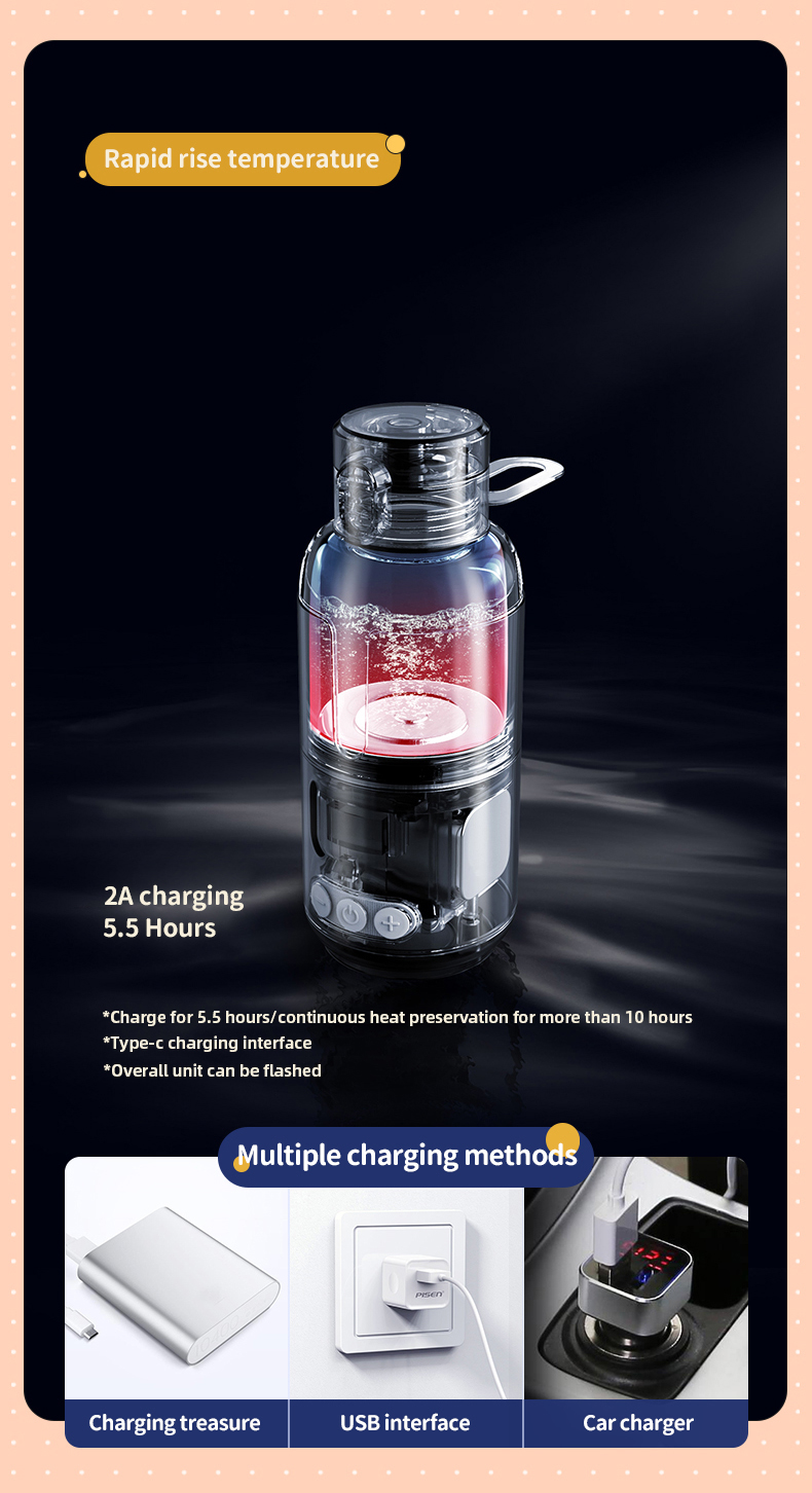-Built-in 4400mAh battery, like formula ready water kettle, wireless and portable Perfect for travel, car, on the go.
